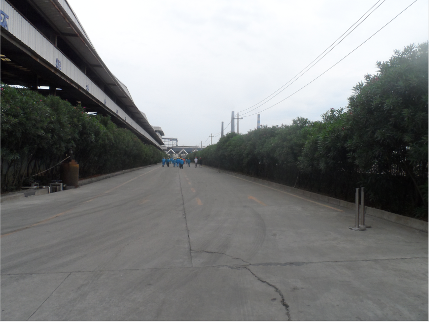 现场液氧值班人员在作业时发现液氧站内一台液氧储罐泄露后向精炼炉车间报告,精炼炉车间立马汇报给生产部和安环科。公司领导在接到安环科的汇报情况后,应急总指挥高卫星紧急下令启动《液氧泄漏事故应急救援预案》并在办公楼大门口紧急成立应急小组。警戒组员第一时间拉起警报并在泄漏点20米处设置警戒线防止不相关人员进入。
