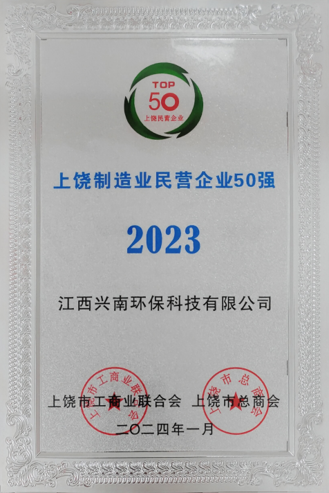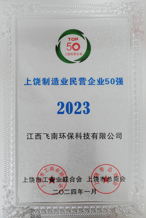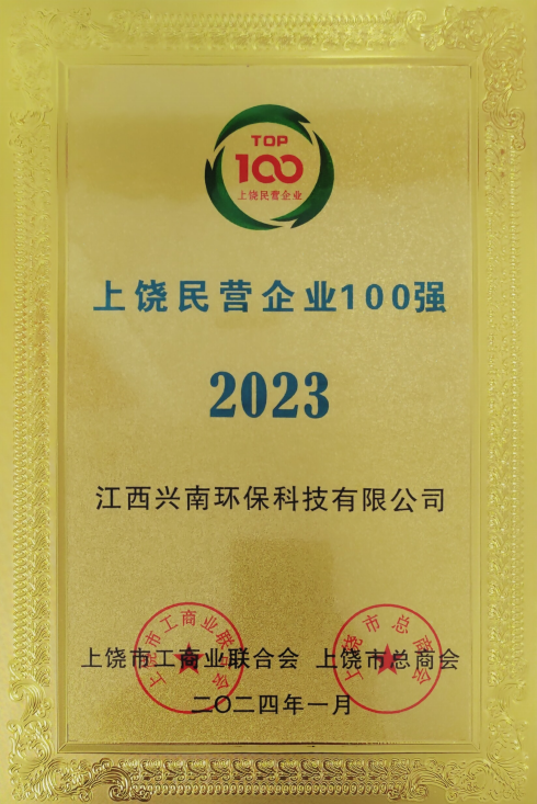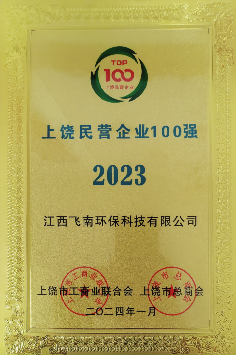 2024年1月,飞南资源旗下两家子公司:江西飞南环保科技有限公司、江西兴南环保科技有限公司荣获2023上饶民营企业100强、2023上饶制造业民营企业50强称号。