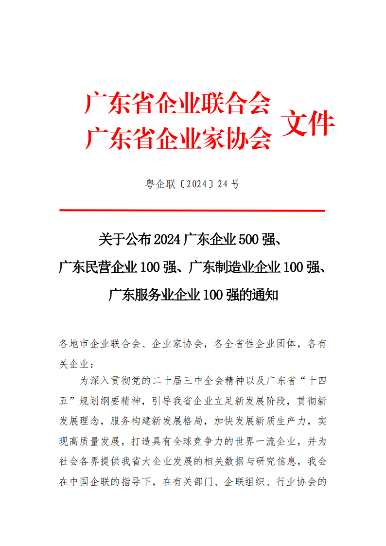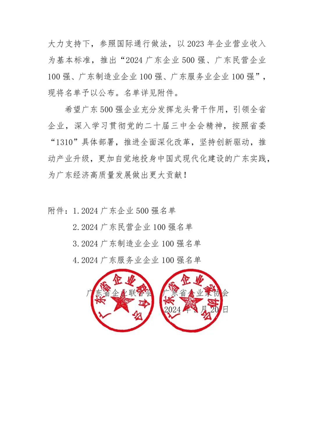 9月20日,由广东省企业联合会和广东省企业家协会在广州联合举办了以“推进全面深化改革,建设世界一流企业”为主题的2024广东500强企业发展大会,正式向社会发布“2024广东企业500强”、行业百强榜等多个榜单及发展报告。