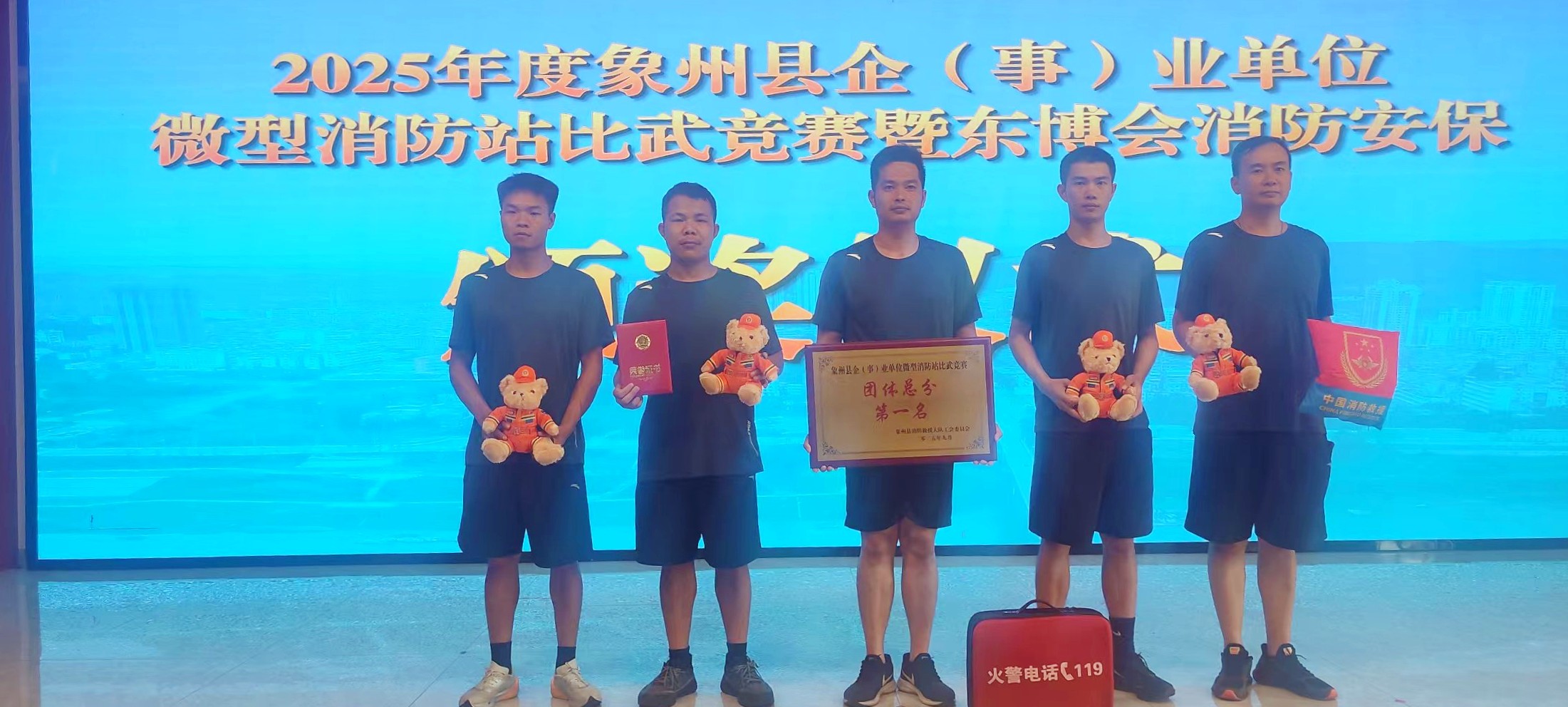 近日,在象州县消防救援大队关于开展全县企(事)业单位微型消防站比武竞赛活动中,一支来自生产一线的队伍以黑马之姿脱颖而出——广西飞南资源利用有限公司消防应急队代表队,其凭借过硬的技能、默契的配合和顽强的作风,从众多参赛队伍中力压群雄,最终摘得“团体总分第一名”的桂冠,用汗水和实力书写了企业专职消防队伍的荣耀篇章。