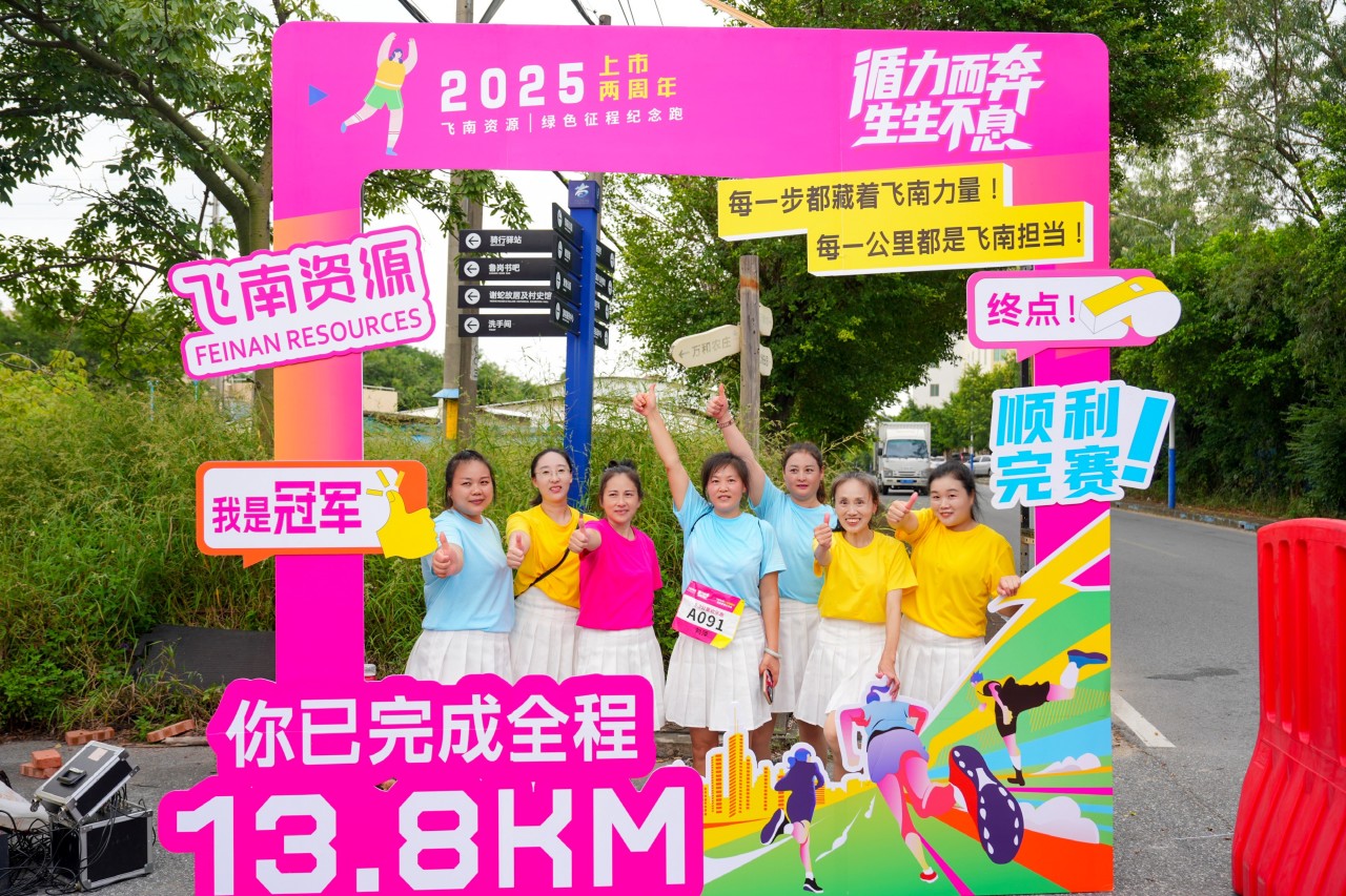 赛道有终点,奔跑无止境。飞南资源上市两周年绿色征程纪念跑圆满落下帷幕。此次活动不仅为飞南资源的上市两周年庆典画下了充满活力的句点,更吹响了公司迈向新征程的号角。它将激励全体飞南人将赛场上拼搏、协作、坚持的精神,融入到“有限资源、无限循环”的绿色事业中,用奔跑的姿态,在中国循环经济上跑出新的加速度!