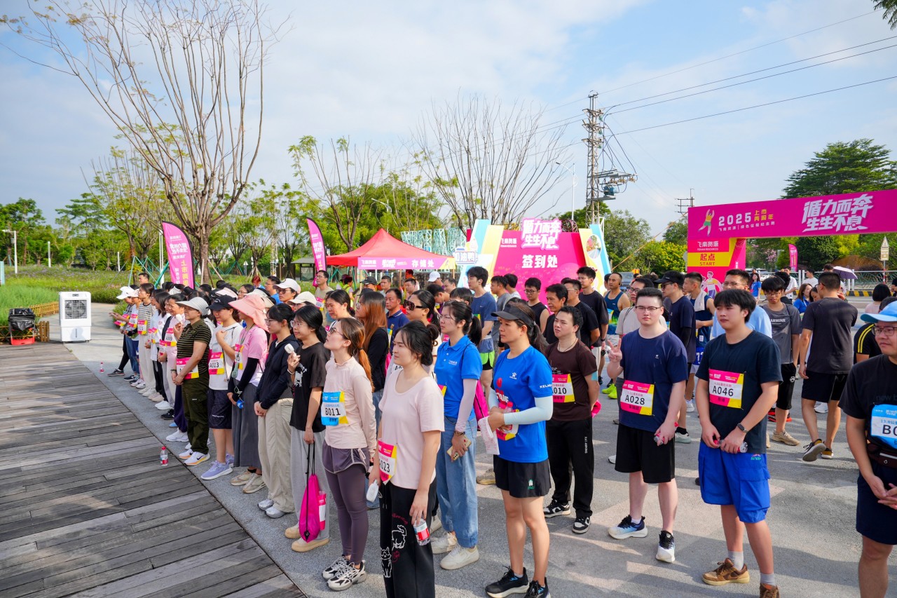 活动在动感洋溢的健美操表演中拉开序幕,随后由专业教练带领全体参与者进行动态拉伸热身,为接下来的马拉松赛事蓄满能量,解锁飞南绿色征程。